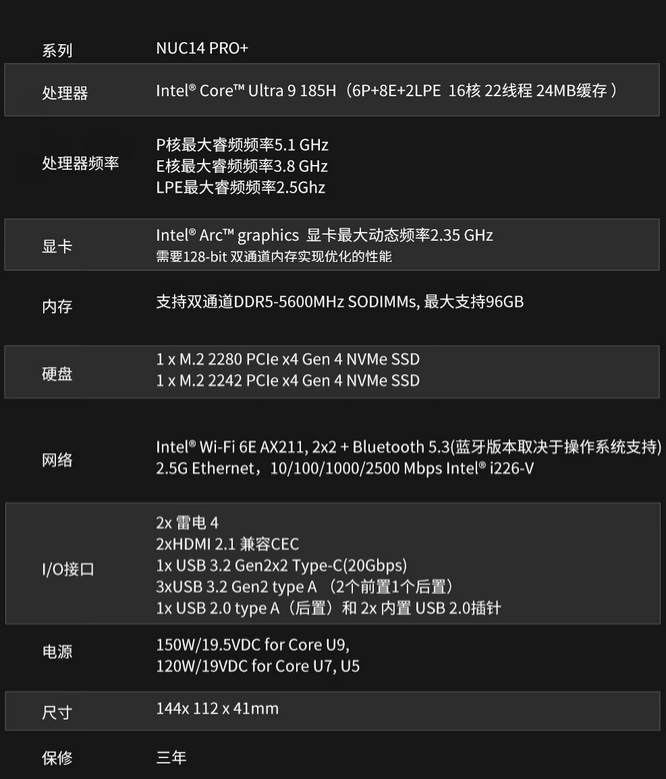 華碩(ASUS)NUC14 Pro 迷你主機高性能商用AI辦公臺式機mini電腦 酷睿Ultra9-185H